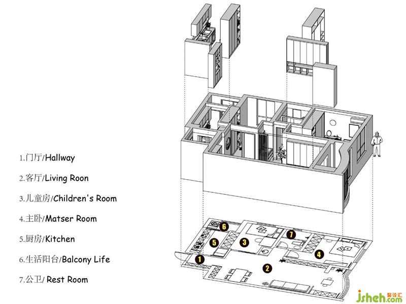 4、兒童房門(mén)改方向改成推拉門(mén),這樣餐廳可以進(jìn)入自然光線,采光和空氣更對(duì)流。同時(shí),原過(guò)道空間利用起來(lái),洗手間做成干濕分區(qū),公衛(wèi)使用空間也更大深圳室內(nèi)裝修設(shè)計(jì)