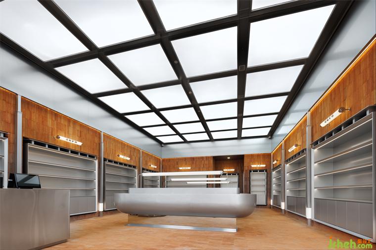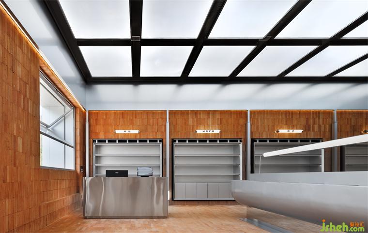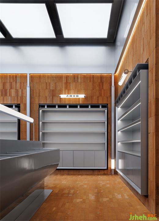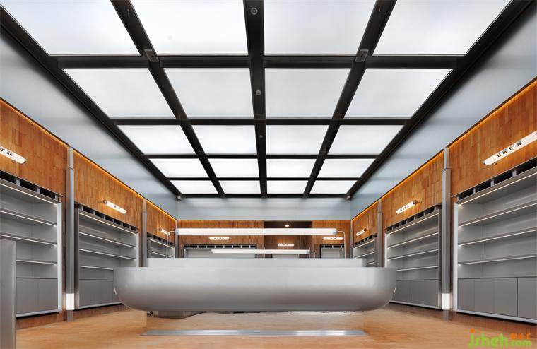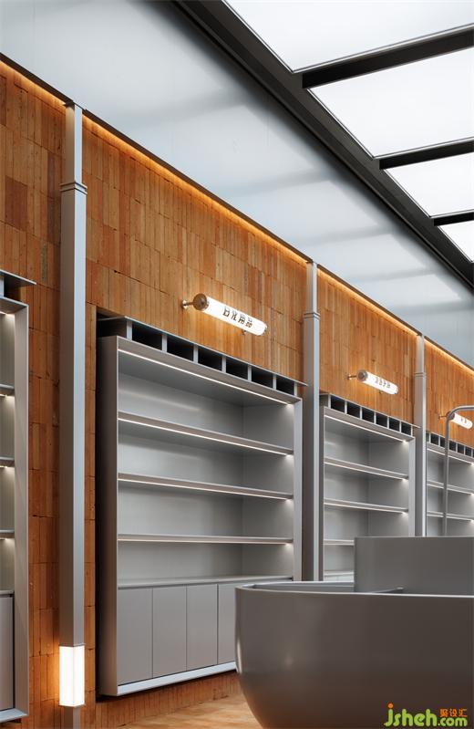 當客人邁進商店,金屬感十足的展示柜造型與墻面紅磚形成了鮮明對比,創(chuàng)造出一種與眾不同的空間氛圍,從而給人們耳目一新的感覺。這種視覺沖擊力的空間形態(tài),在凝固住某種悠然、懷舊氛圍的同時,也是設(shè)計師刻意留出的暢享余地。以光為頂,將創(chuàng)意與時尚相結(jié)合。頂部陣列的天光模板和金屬框架貫穿整體,設(shè)備的隱藏手法將空調(diào)風(fēng)口、煙感、音響籠罩在特定的秩序之中。入墻的展示柜仿佛懸浮于柱子之間。免稅店設(shè)計展柜邊框與隔板都進行了切角處理,整個展柜顯得輕盈干凈。展柜上方的壁燈則歸納了售賣品類,使人一目了然。充滿秩序感的柱子銜接頂部,將頂面、墻體進行重構(gòu),形成特有的空間特征。