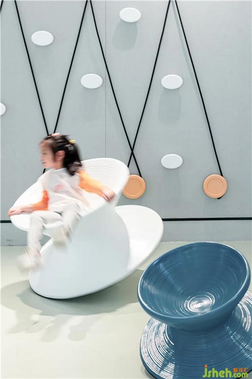 加入平衡陀螺椅以表達(dá)夢境與現(xiàn)實的空間感受,小朋友們坐上陀螺椅仿佛進入夢境里的世界一樣,同時還能訓(xùn)練平衡感。