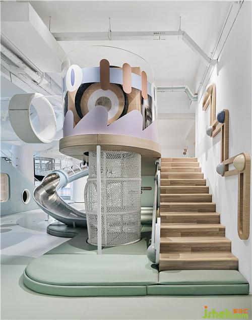 Dazzles the cool revolving slide, at will sa huan the space, lets the child have the immersion type play experience. The wooden staircase is designed for the safety of children.