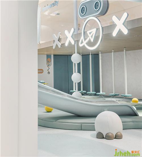 超童趣的鱷魚造型小坡,超亮眼的淺藍(lán)配色以及鱷魚身上背脊幻化成安全扶手長春兒童樂園設(shè)計,跳脫常規(guī)充滿童趣,更添些許無懼無畏的挑戰(zhàn)魄力。