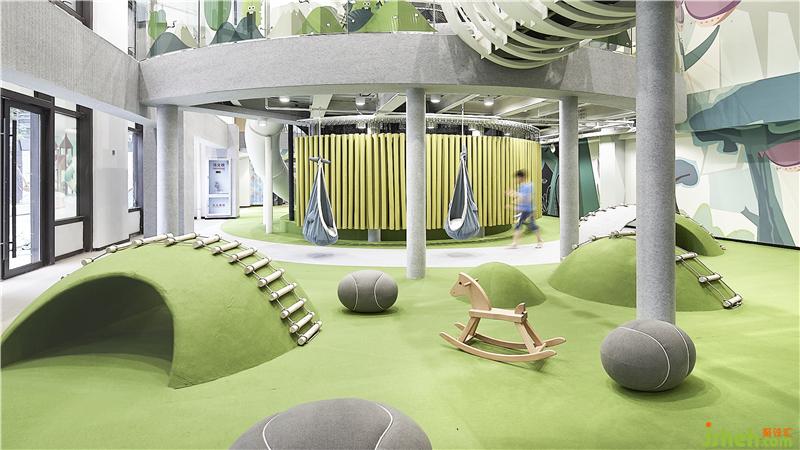 In the first floor, service area, shoe changing area, family toilet and other auxiliary space are set. At the same time, all kinds of recreation spaces suitable for 3-5-year-old children are tailor-made on the first floor, which integrates climbing, crossing, drilling and other projects, so that preschool children can better contact and understand the world through various means.