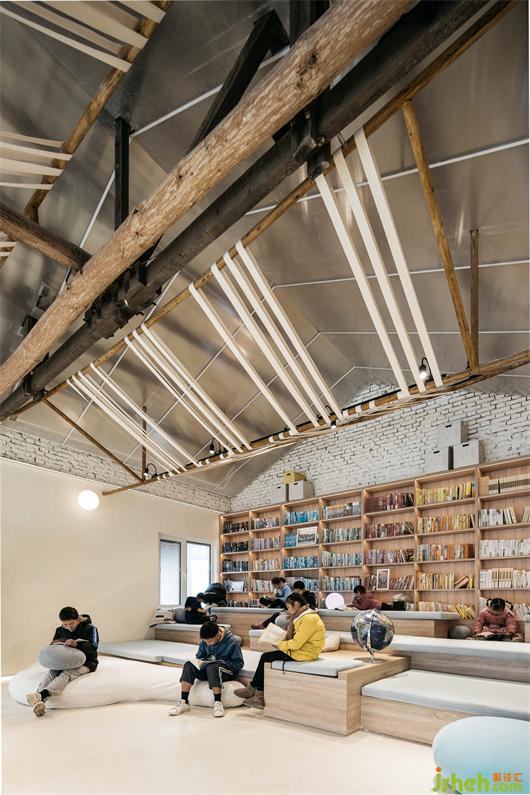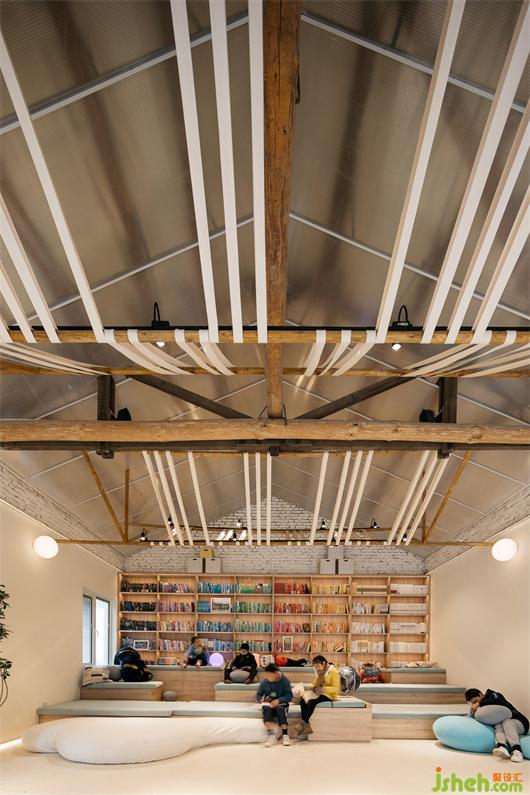 原有單一的閱讀區(qū)被重塑成多元的復(fù)合型空間,兼具閱讀、儲(chǔ)藏、舉辦小型活動(dòng)等功能。階梯式的閱讀景觀延續(xù)公共空間的視覺聯(lián)系,同時(shí)讓孩子們可以尋找到屬于自己的學(xué)習(xí)角落。