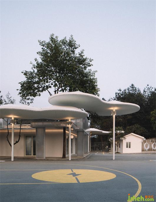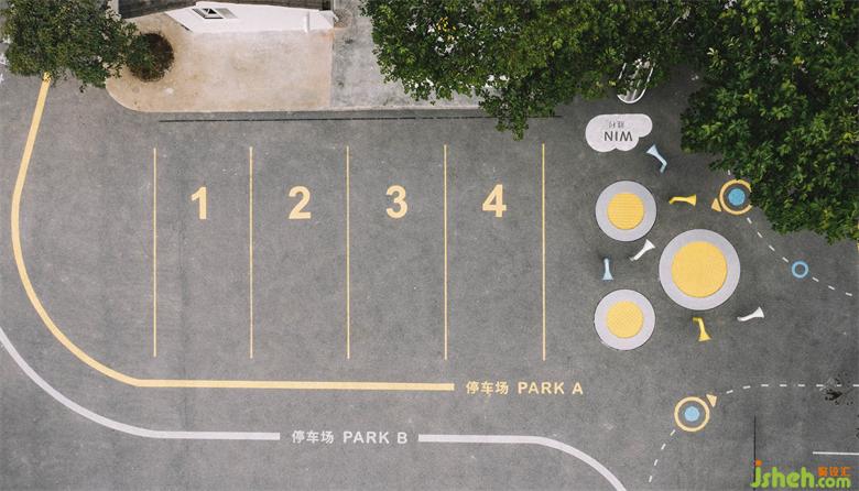 由內(nèi)及外,廣場設(shè)計(jì)選用柔軟的線條與相對(duì)低飽和度配色,以保證整體風(fēng)格與翻新建筑、云朵連廊有機(jī)融合。材質(zhì)則以環(huán)保、抗氧化EPDM和透水混凝土為主,極大了提升了廣場的實(shí)用性。
