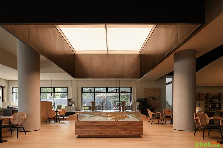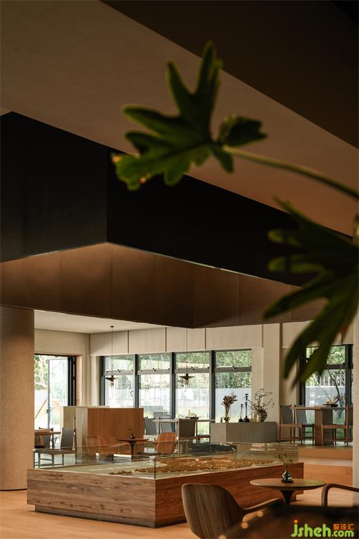 梓山湖半島是距離武漢僅1個(gè)多小時(shí)的車程的近郊度假地,拾光·打野餐廳設(shè)計(jì)作為梓山湖新城龍首半島區(qū)的復(fù)合型社區(qū)餐酒空間改造自原梓山湖半島窗口位置的原蜜盒酒店接待大堂建筑,“打野”在武漢話中意指“開小差”,拾光·打野的空間正是希望表達(dá)對日常規(guī)矩生活的一次短暫的逃離。