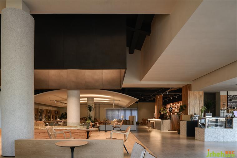 作為一家復(fù)合型社區(qū)餐酒空間,拾光·打野具有咖啡、餐飲、飲酒、展覽、接待、社區(qū)中心等多樣化的功能,也是半島湖居生活中重要的精神標(biāo)簽,與蜜盒酒店、棲客營地等文旅資源及半島社區(qū)形成有機(jī)良性的互動,餐廳設(shè)計(jì)為旅居客戶及社區(qū)業(yè)主提供豐富多樣的生活服務(wù)。