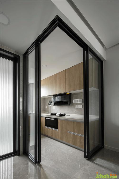 餐廳區(qū)域及廚房正面區(qū)域,餐廳的頂面和客廳的頂面設(shè)計(jì)為一體南京室內(nèi)設(shè)計(jì)師,四周做了反燈帶處理,看起來既簡(jiǎn)單還大方。