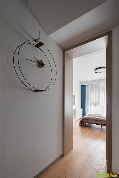 臥室的門和平時臥室門都不一樣,臥室的門是開在中間所以采用了現代手法的谷倉門設計,門的顏色和臥室的背景融為一體,滿足整體效果而且保持了臥室的私密性。