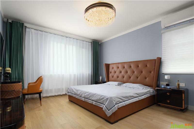 主臥室同樣延續(xù)了時下流行的現(xiàn)代輕奢風格,除了標配元素黃銅、大理石、玻璃等多元材質的混搭外南京裝修設計,在以咖、灰、金為主色調(diào)的空間氛圍中,亮眼的撞色搭配更有利于營造出一種活潑輕快的氛圍,和諧又有層次感,充分滿足了輕奢族對于品質居住的完美想象。