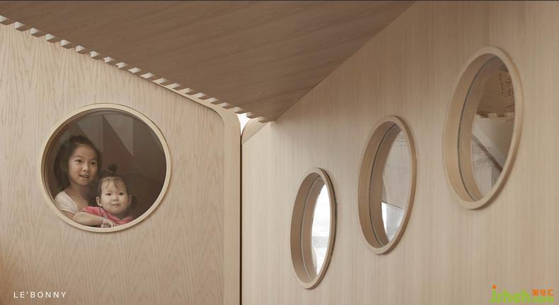 除了有意思的功能分區(qū),生動的動物形象,空間中還有著各種各樣不同的洞口,室內(nèi)設(shè)計師小朋友可以在不同的洞口發(fā)現(xiàn)不一樣夢幻有趣的世界。