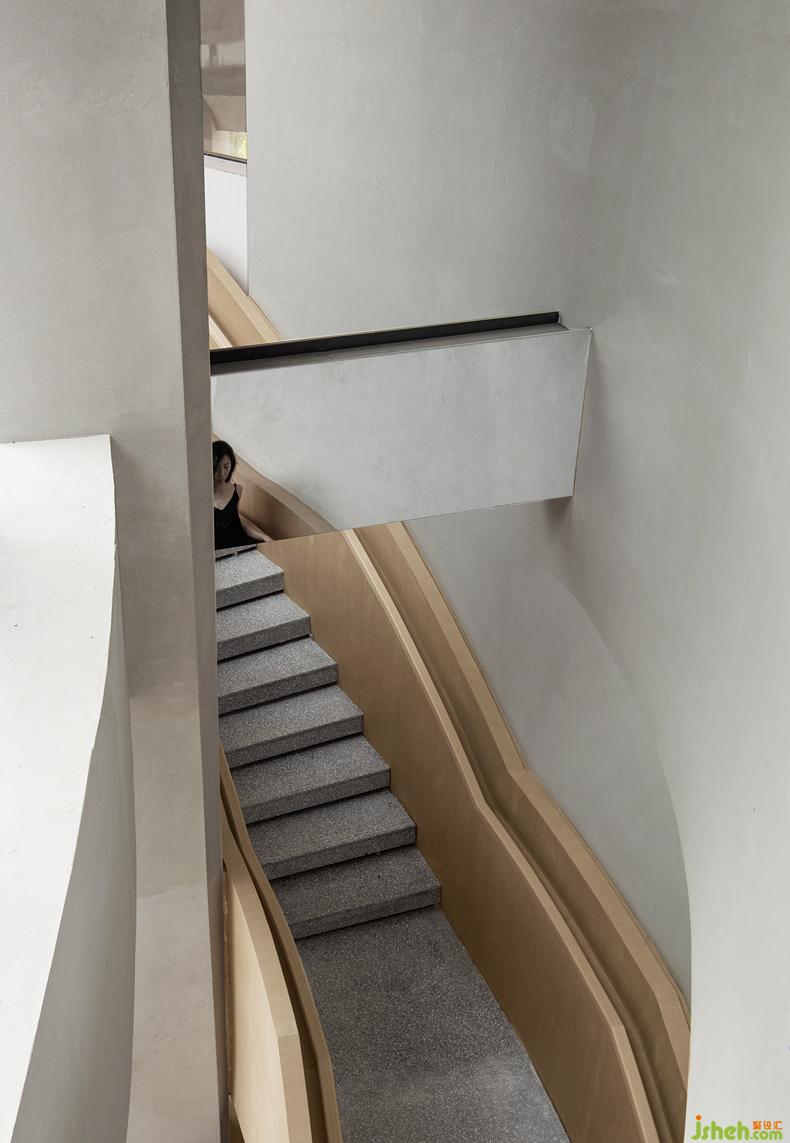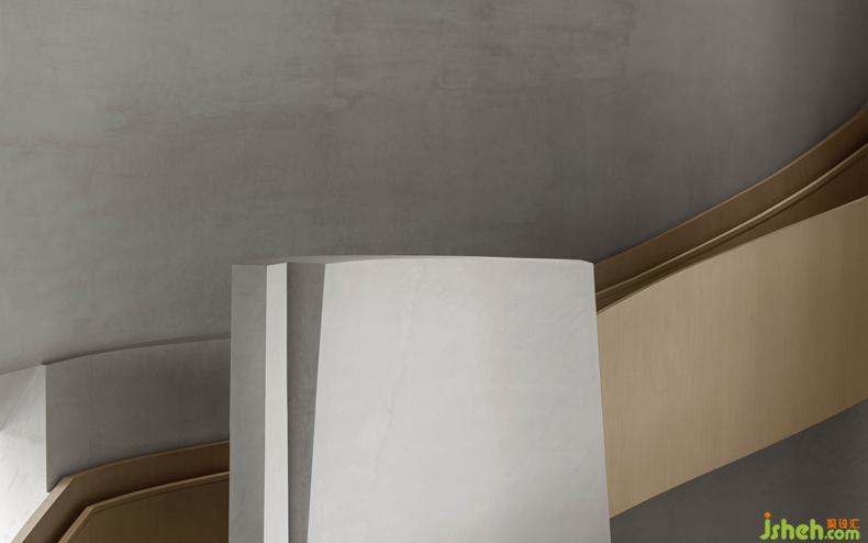 在生命之源性文化展館的整個(gè)前廳造型設(shè)計(jì)上,設(shè)計(jì)團(tuán)隊(duì)通過兩條曲面造型的樓梯貫穿整個(gè)前廳,文化展館設(shè)計(jì)一條蜿蜒向上,一條順延向下,兩條樓梯于前廳視角中交織在一起,正寓意著兩性中男性與女性角色。他們相互獨(dú)立,卻又相互平等,兩者相望。