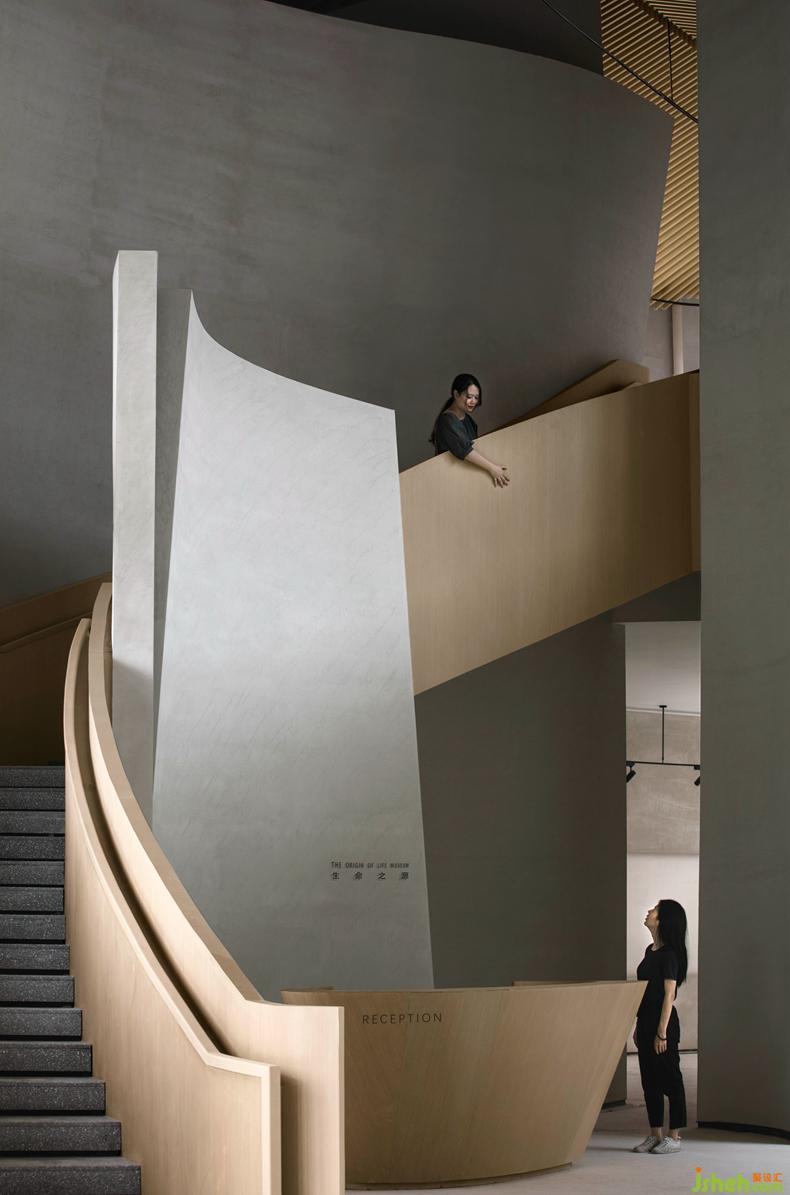 In the design of the whole vestibule of the Origin of Life Culture Museum, the design team runs through the whole vestibule through two curved staircases, one winding up and the other descending. The two staircases are intertwined in the perspective of the vestibule, implying male and female roles in both genders. They are facing each other independently, yet equally.