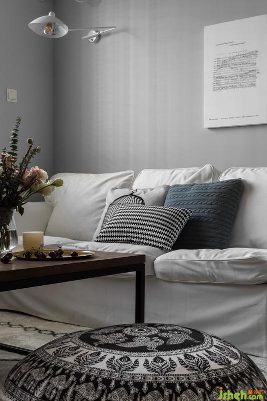 原來的沙發(fā)是很早買的,換了白色沙發(fā)套,跟新的沒區(qū)別??蛷d只有地毯是新買的,其他都是利用的舊物。