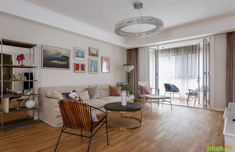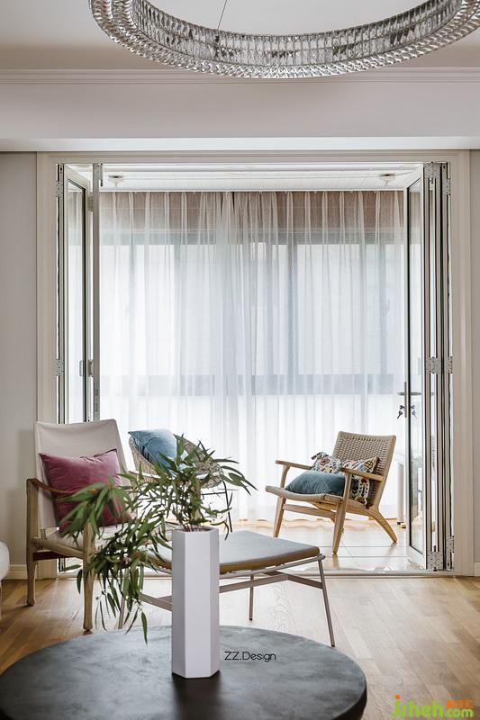 業(yè)主喜歡自由自在的不受束縛的生活方式,為了有更好的視野和更開(kāi)闊的空間感,室內(nèi)設(shè)計(jì)師把陽(yáng)臺(tái)原來(lái)的移門(mén)拆除后做了白色折疊門(mén),里面一層電動(dòng)窗簾,陽(yáng)臺(tái)外加一層白紗讓光線變得柔和,讓空間也靈動(dòng)溫柔起來(lái)。