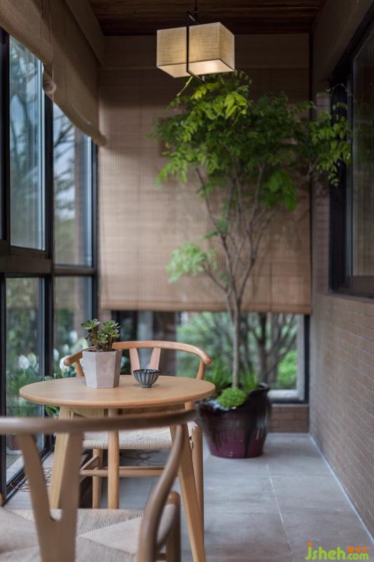 大陽臺橫跨三個房間,一邊作為洗衣間,放置灑掃工具。一邊作為園藝區(qū),常住的主臥推開窗就是各種花花草草,也許有一天窗外的紫藤會爬滿屋頂?shù)?。窗簾使用竹卷簾禪意滿滿。