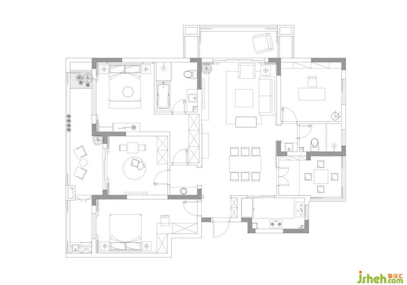 平面布置圖,格局改動不了了,小小遺憾。室內(nèi)設(shè)計師剛拿到戶型特手癢啊,無奈。首先廚房空間太小,其次南面中間臥室相當于一個過道,到南陽臺需要經(jīng)過這個臥室,所以如果規(guī)劃為臥室的話,私密性太差,后來考慮到孩子還小而且是第二居所所以就把這個空間做成了兒童活動室,再次廚房旁邊的房間面積較小,做臥室書房都不合適,索性就打了榻榻米做成了多功能室,后期根據(jù)實際需求提高空間可塑性。