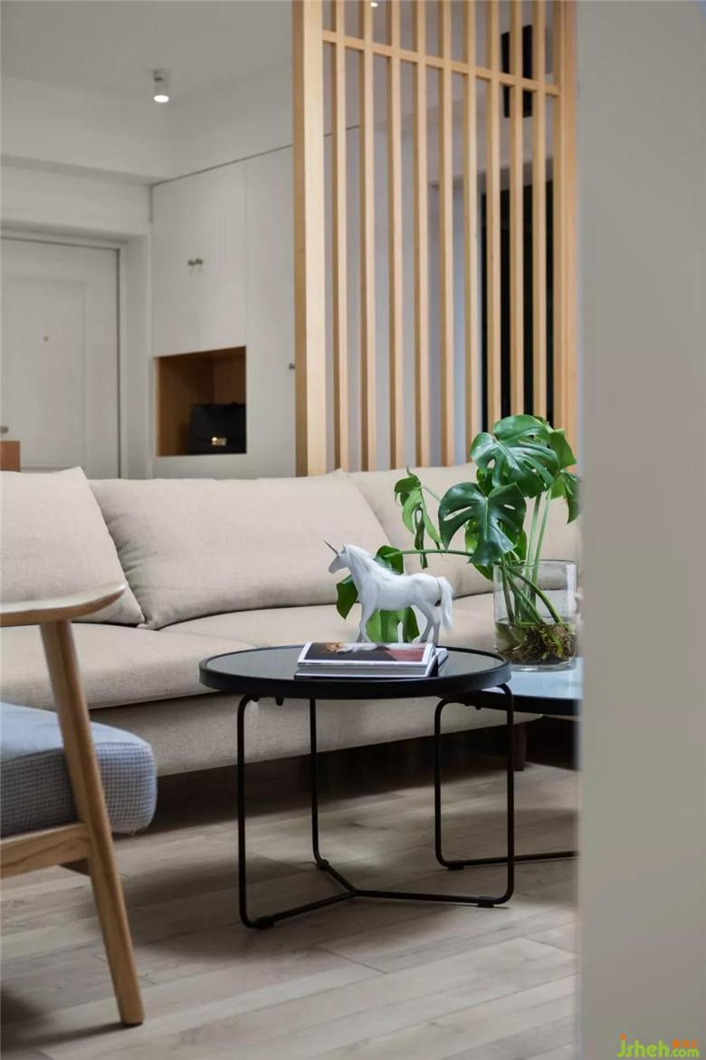 進門后在沙發(fā)后面做了一個實木隔斷,對于空間的連貫性和門廳的采光不會有影響,同時又起到玄關(guān)遮擋的效果。