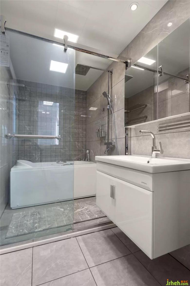 衛(wèi)生間比較長(zhǎng),格局改造后使用起來更加方便順暢。