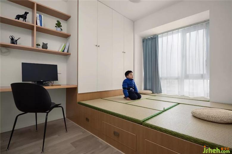書房需要兼具客房功能,做了個(gè)整體的榻榻米,增加了儲(chǔ)物空間,偶爾來客人也可暫住。