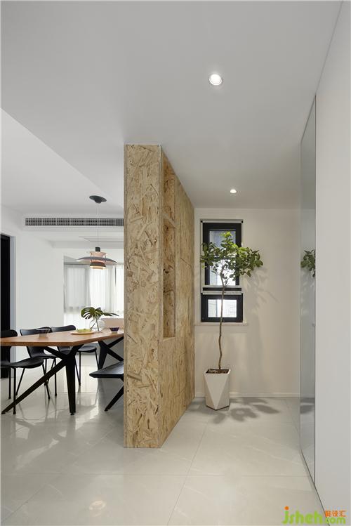 ▲細節(jié)方面設計師也做了些處理,門廳小隔斷背面凸出墻面一公分把踢腳線的頭隱藏了起來。不同材料之間的銜接是設計施工里重要的課題,南京裝修設計而且要超前預想到問題。