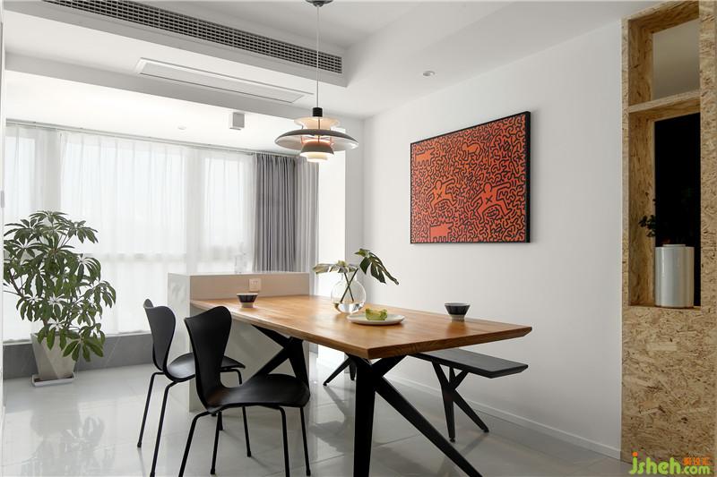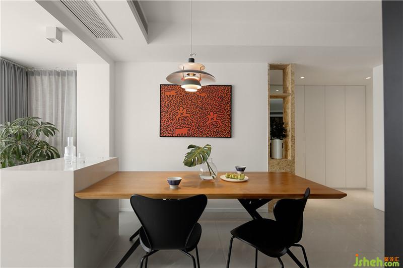 ▲基礎大面積留白加原木色,墻面一副橘紅的凱斯. 哈林的涂鴉畫,明亮溫暖?!熬褪俏覀兿胍臉幼影 保?