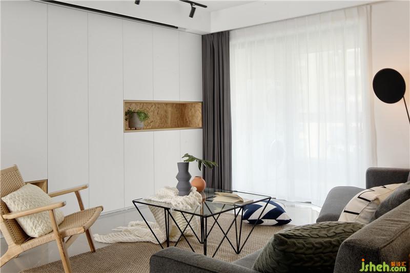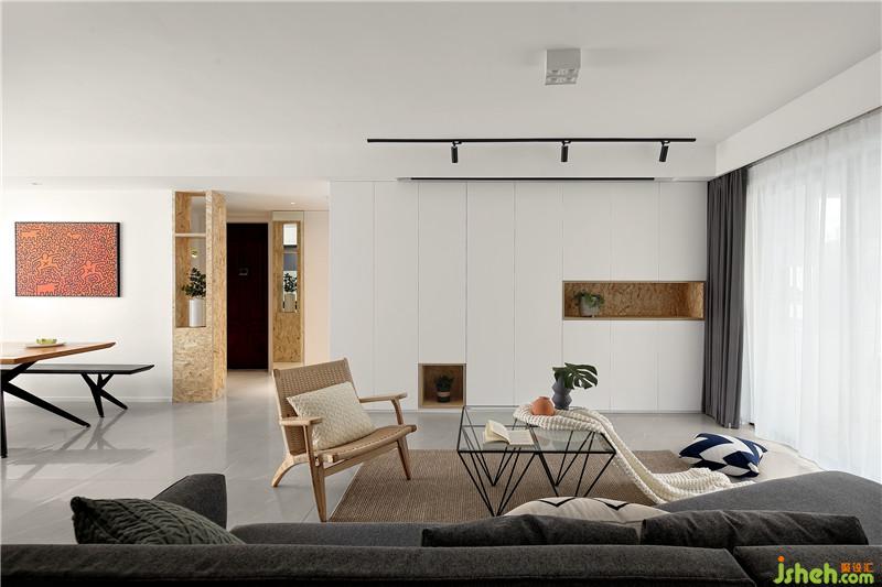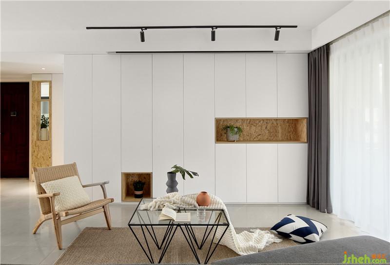 ▲從客廳看向門廳,這一組柜子左邊兩扇門是背面開(kāi)門作為門廳的衣帽柜來(lái)用,右邊的是作為客廳收納。