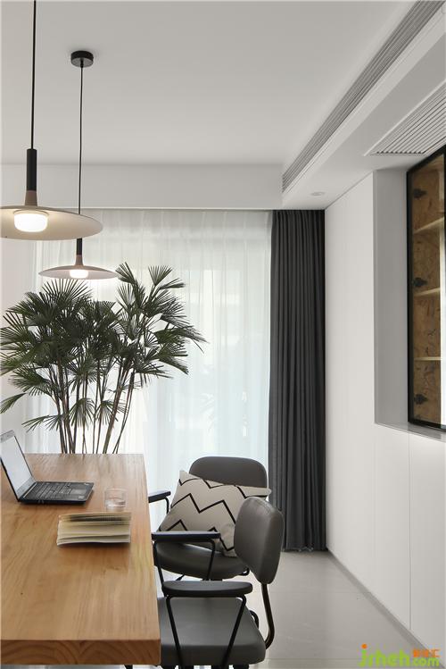 ▲從客廳看餐廳,由于地面地暖抬高,所以設(shè)計(jì)師在吊頂方案的設(shè)計(jì)上就盡可能的保持經(jīng)常活動(dòng)的空間的高度來(lái)保證舒適度。