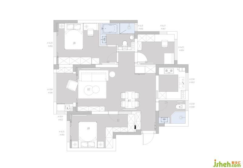 ▲原始平面圖 我家的戶型較為規(guī)整,當(dāng)初選擇戶型時就想在滿足現(xiàn)階段功能性和經(jīng)濟(jì)能力間做個平衡。選擇小戶型,同時能找到一位好的設(shè)計師幫助規(guī)劃就是我們一開始比較明確的方向。但方向明確不代表就找尋順利,過程中也伴隨著對未知結(jié)果的不安,對龐雜信息篩選的煩躁...在熬過好幾個大夜,翻找各種平臺,看過難以計數(shù)的案例后,終于找到自己心儀的設(shè)計師人選@張兆娟 初遇娟姐是在某星爸咖啡館,她隨和的性格和爽朗的笑聲令我們印象深刻,更重要的是她沒有對我們繁多的要求不耐煩,反倒是認(rèn)真記錄,仔細(xì)傾聽。當(dāng)時我們的幾大訴求是:1. 保留2個衛(wèi)生間,同時最好有一個能放下浴缸;2. 廚房蒸箱、烤箱、洗碗機(jī)等電器要上,高低臺,雙開門冰箱,柜子要多;3. 作為一枚博士生,要有獨(dú)立書房,但最好又能滿足臨時客房、機(jī)動琴房等需求;4. 主臥要有書桌,閱讀區(qū)要多,客廳不要傳統(tǒng)電視墻,想要整面書架 5. 色調(diào)溫暖,豐富,有質(zhì)感...