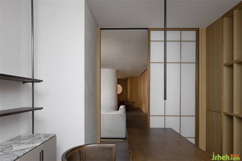 The plane is the basic logical relationship, containing rich but not necessarily intuitively visible contents. The barren stone in the center of the selection, the landscape in one corner of the living room and the landscape vignette at the entrance form the stable structure of the space, and with the connection of three points, the hidden geometric triangle emerges. Different spaces are partially elevated according to the change of the width of the path, which not only defines the different functional areas, but also makes the space vivid with rhythm and layers.