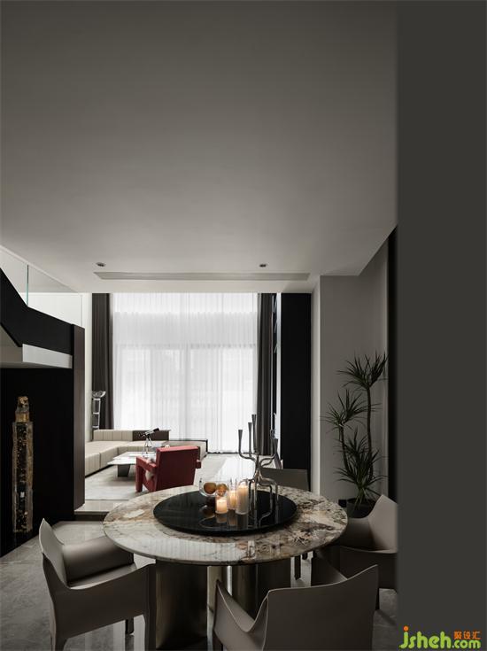 餐廳作為家庭凝聚力的象征,餐廳外面是一個(gè)小天井和流水墻,別墅裝飾設(shè)計(jì)師希望在每個(gè)區(qū)域,每個(gè)視角都有讓人賞心悅目的風(fēng)景,即便是不夠開闊的空間,也讓空間盡可能的從視覺,別墅裝飾聽覺,身體尺度感受到空間的流動(dòng)和延續(xù),別墅裝飾設(shè)計(jì)空間不僅僅是供人們使用的機(jī)器,它本身有自己的生命力,這種生命力來自于人和房子之間的身體和情感的互動(dòng)。