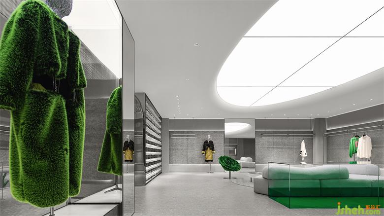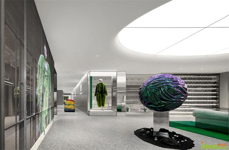 入口的地方是一個色彩斑斕的玻璃鋼的前臺,概念館設計這個造型的設計是從大自然中的一幅畫中提取的元素,炫彩系列也是YW品牌主打的款式之一,讓布料的顏色在空間再次得到延續(xù)和生長,正所謂品牌概念館的設計,我們更多的是傳達品牌深層次的文化屬性,讓空間做為載體去演繹它。