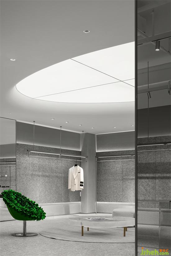 未來(lái)主義概念展廳 ,設(shè)計(jì)師無(wú)一處不傾注心血。品牌、空間、產(chǎn)品,全方位武裝到牙齒。概念館設(shè)計(jì)以藝術(shù)品的方式呈現(xiàn)服飾,為現(xiàn)代零售注入個(gè)性血液。我們希望這個(gè)空間是個(gè)性的,它應(yīng)完整詮釋了品牌的調(diào)性。