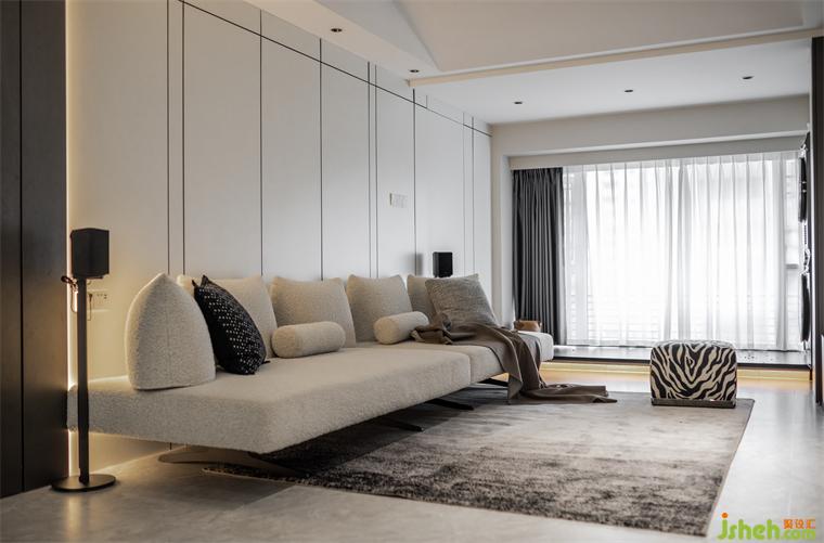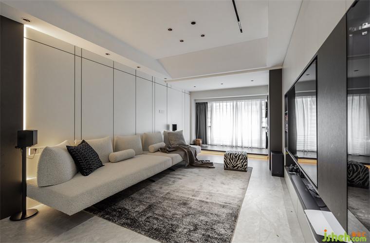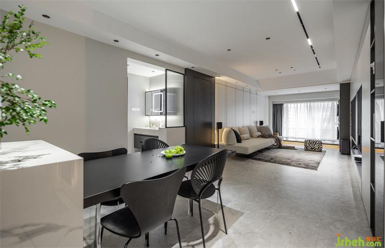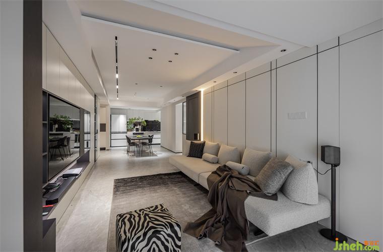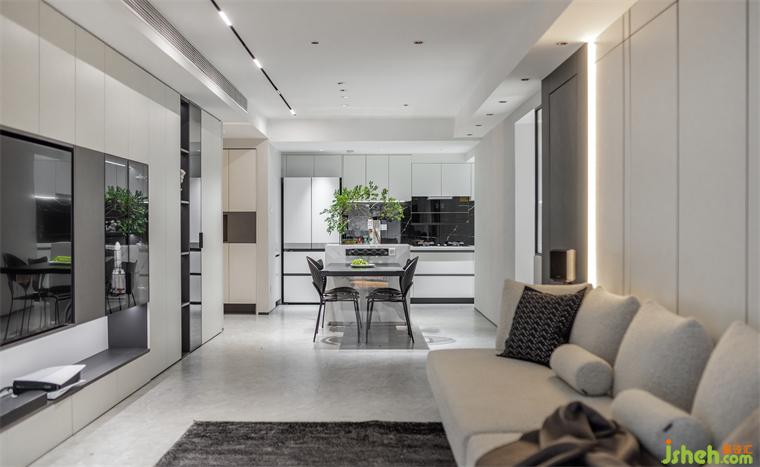 項(xiàng)目介紹 | 本案主要以黑白灰為基調(diào),白色系作為主色調(diào),黑色為點(diǎn)綴色調(diào),其中男女業(yè)主有兩個(gè)上幼兒園的小朋友,所以在色調(diào)上還會(huì)融合一些童趣的小物件,讓空間更活潑,層次感更強(qiáng)。隱形門的設(shè)計(jì)使得沙發(fā)背景更加的整體線性分明,電視背景兼?zhèn)淞艘徽诺膬?chǔ)物柜,使得空間有更好的延展性,整體性更強(qiáng)。在小空間里面針對(duì)家四口來(lái)說(shuō),在兼?zhèn)涿烙^的同時(shí)也要做到一定的儲(chǔ)物功能。裝修設(shè)計(jì)