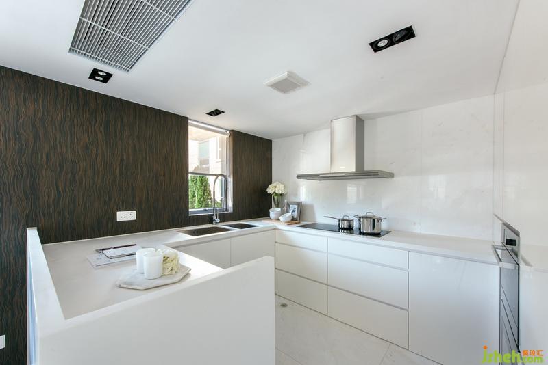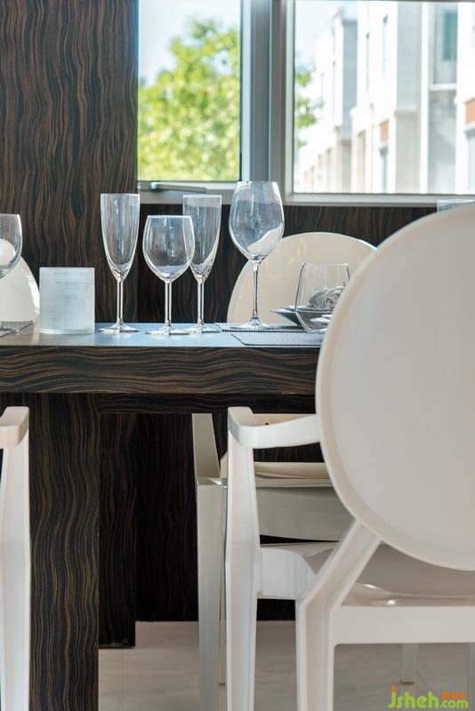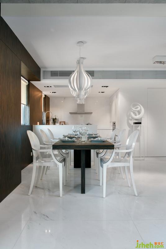 在一個空間中,隔斷和擺設(shè)越多,對生活的束縛也就越大,而這套家居設(shè)計化繁為簡,室內(nèi)設(shè)計師余留下的元素將空間彰顯地明亮通透。餐廳廚房配有白色可麗耐臺面,與潔白的大理石地板交相呼應(yīng),樸實渾厚的深棕色木質(zhì)墻壁一掃極簡空間的冷酷。木色與灰白色的搭配,看似淡雅的色彩與結(jié)構(gòu),卻在不經(jīng)意間為住戶帶來溫暖的舒適之感。餐廳上的吊頂更是整個區(qū)域的點睛之筆。而客廳的用色比例與布局平衡讓極簡充滿層次又賦予活力,巧妙地放置簡潔的純白色軟裝進行搭配,不僅為空間增添了靈動之感,同時也是一種獨特的氣質(zhì)體現(xiàn)。這樣的極簡之美,將會令你難以抗拒。