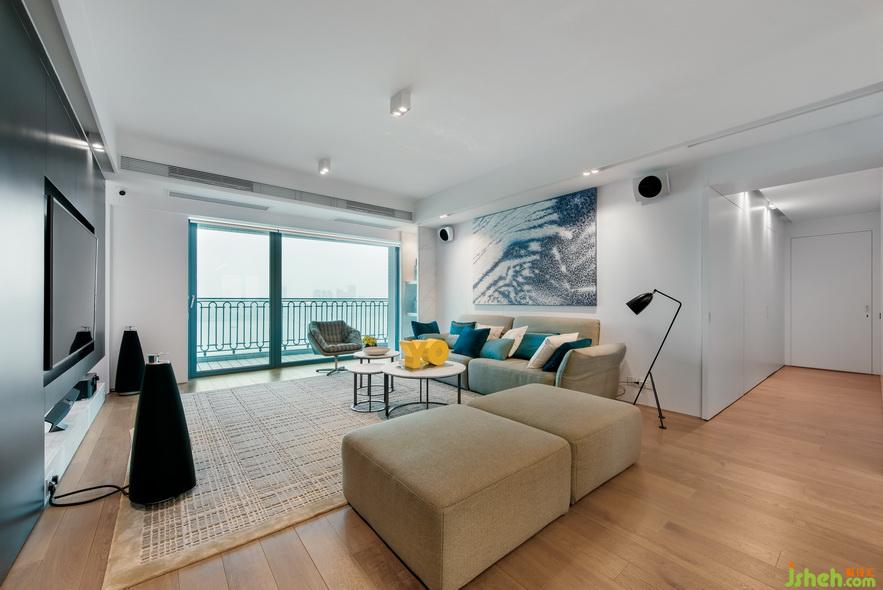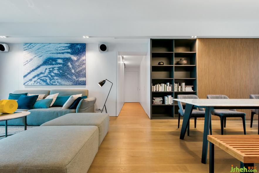 該案例是澳門一處私人住宅,面積約為2000平方呎(約合185㎡)?;宜{(lán)兩色一直是極簡愛好者的心頭之好,灰的高級大氣,藍(lán)的沉靜優(yōu)雅都讓人無所抗拒。此次案例,室內(nèi)設(shè)計(jì)師Danny大膽使用實(shí)木配灰藍(lán)擦出簡約而富有高級感的火花。