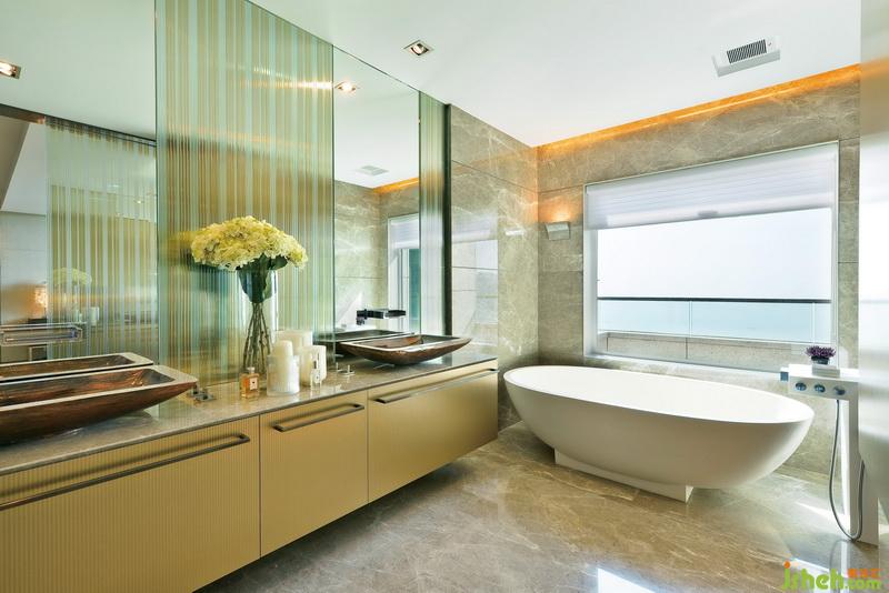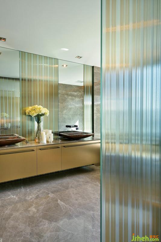 相比大宅的其他空間,盥洗室卻又是另一番素凈天地。彩條設計的玻璃私密性與藝術感兼具,也像是對偏廳屏風的小小致敬與戲謔。橢圓形磨砂質(zhì)感的浴缸令人不由得遐想,置身其中,卸下重擔,憑窗遠眺,那一片太平山海。室內(nèi)設計師