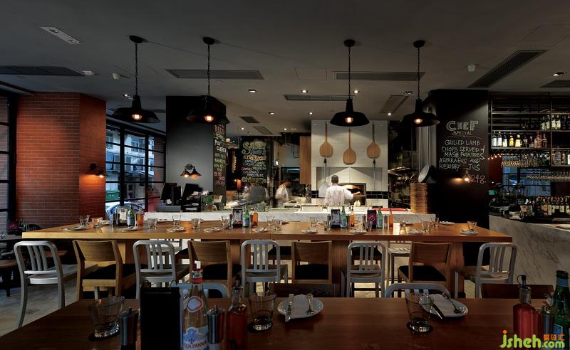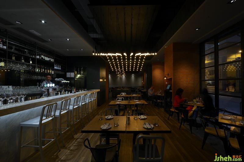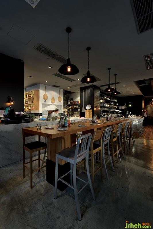 與開放式廚房并列的吧臺區(qū)是夜晚客的天堂