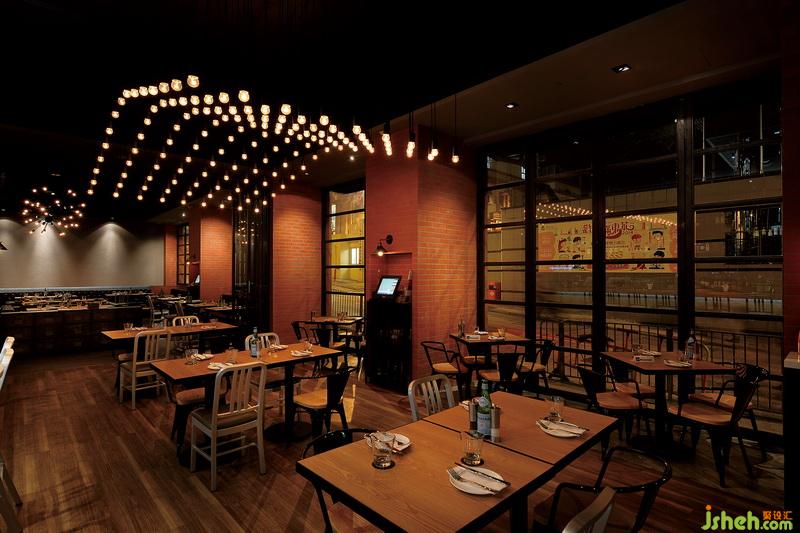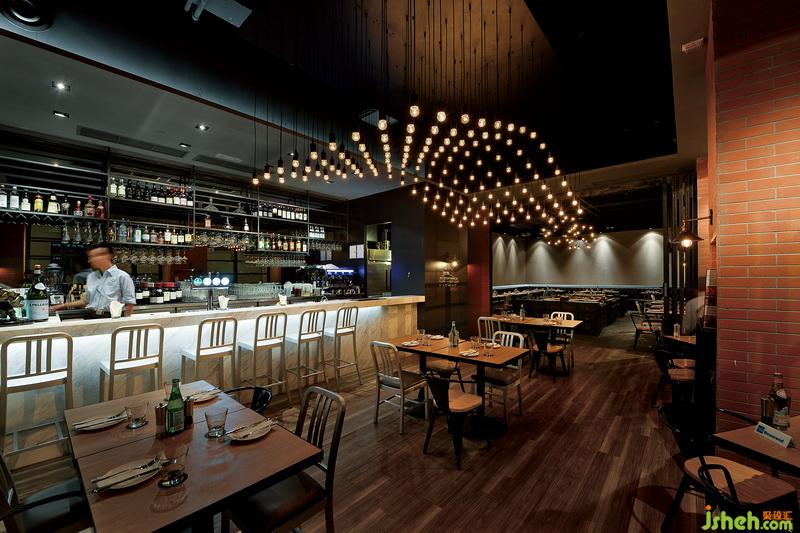 吧臺的燈光將視覺動態(tài)延伸到了卡座區(qū)域