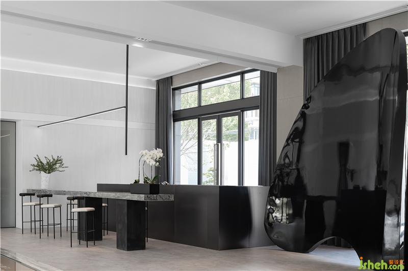 建筑的格局是南北通透,設(shè)計師采用了全高清落地玻璃設(shè)計,最大限度保證了室內(nèi)充足的采光,自然的換氣和視野的開闊。接待中心設(shè)計