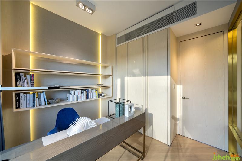 主臥的起居空間少了些娛樂元素,多了些辦公氛圍?,F(xiàn)代主義輕奢風(fēng)格的裝潢,提醒房間主人時(shí)刻保持清醒、狀態(tài)在線。