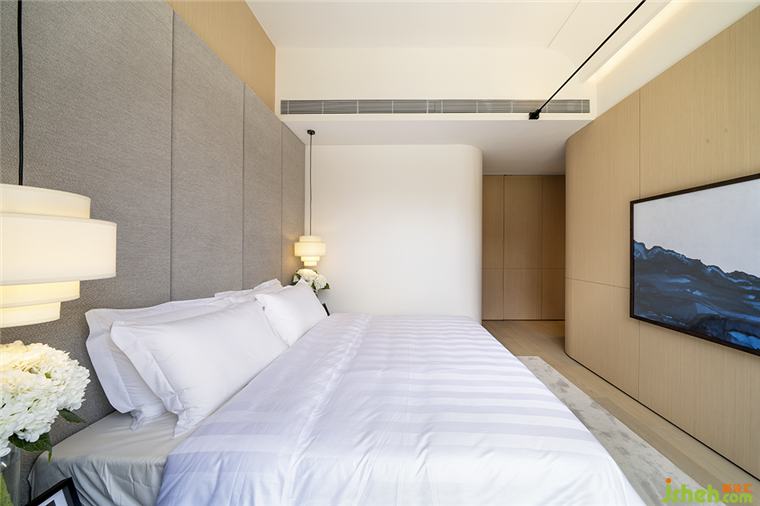 一盞白色薄片金屬整齊排列的吊燈以優(yōu)雅別致的魅力成為餐廳主角;別墅裝修設(shè)計(jì)車線卡其色人造皮及淺色木飾面的大面積導(dǎo)入,盡顯溫暖簡(jiǎn)約的居住氛圍。