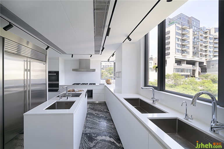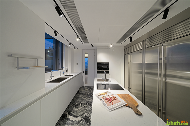 夜幕降臨,室內(nèi)的照明開啟精確設(shè)定的夜間模式,柔和的光線,烘托出材質(zhì)的溫潤(rùn)質(zhì)感,香港私宅設(shè)計(jì)使人的意識(shí)與精神慢慢放松趨于平靜,遵從內(nèi)心想法,漫游于自我的精神領(lǐng)地。