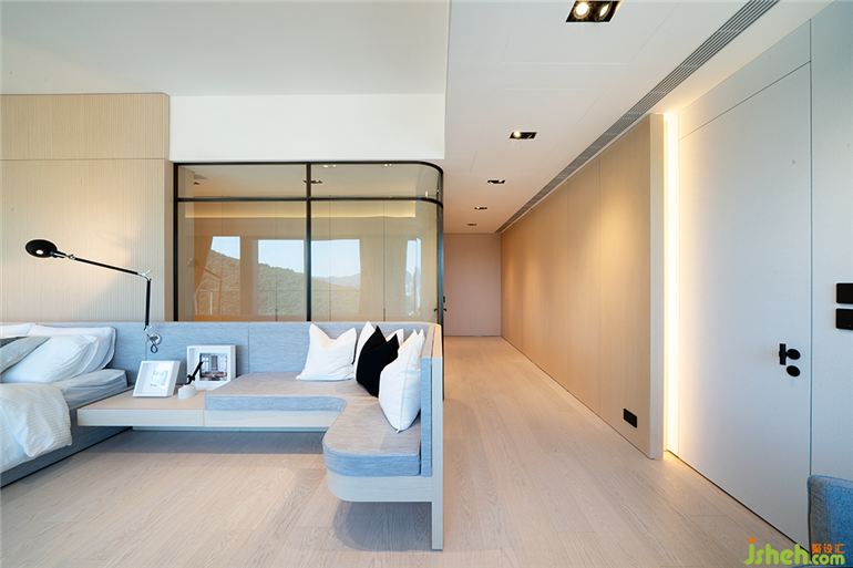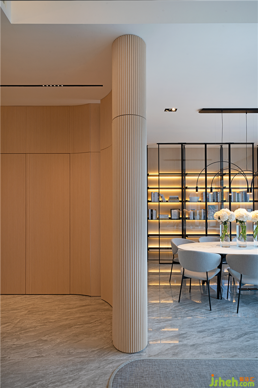 圓弧形與倒角的元素大量使用,弱化了部分立面墻體與個(gè)別材質(zhì)的鋒利冰冷,香港駿嶺薈私宅設(shè)計(jì)流暢的線條感亦展現(xiàn)出舒適松弛的空間語言。