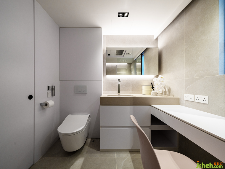 洗手間均采用大面積的白色作為基底,減輕密閉空間的狹窄壓抑,細(xì)節(jié)處盡顯細(xì)膩與秩序,合理有效的功能布局帶來更多的生活幸福感。