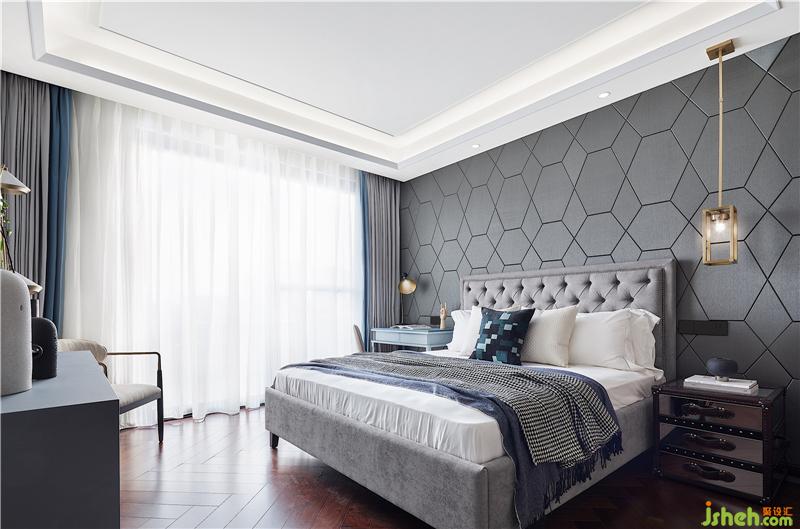 男孩房床頭背景是經(jīng)過變幻后的蜂巢概念,規(guī)整的幾何排布益于孩子思維的拓展開發(fā),不同色塊的組合與千鳥格的搭配,是一種潛移默化的美學投射,孩子自由成長不受限。
