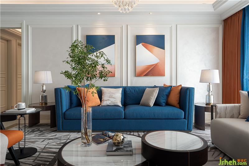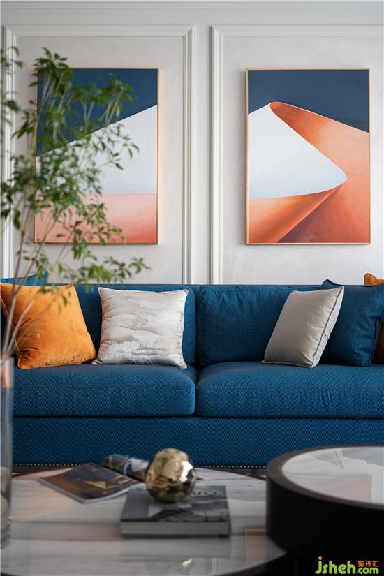 原戶型中一成不變的泛黃陳舊感,由爽凈簡(jiǎn)約的白色所替代。在輕盈的底色上,軟飾加載典雅藍(lán)和暖意橙,營(yíng)造極具視覺沖擊力的品質(zhì)感。長(zhǎng)直型空間闊然敞開,開合出高朗尊貴的廳室風(fēng)態(tài)。