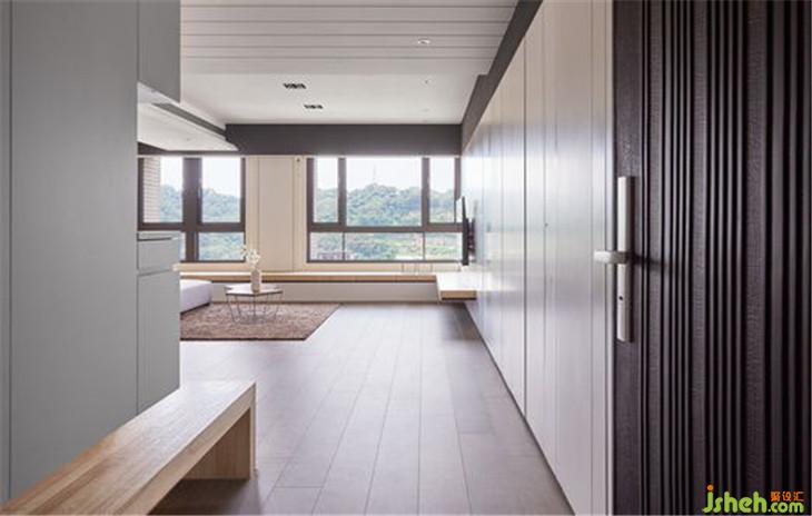 我們在客廳設(shè)計了一整條的窗邊臥榻,串聯(lián)了書房與客廳的機能,也能延伸視覺。