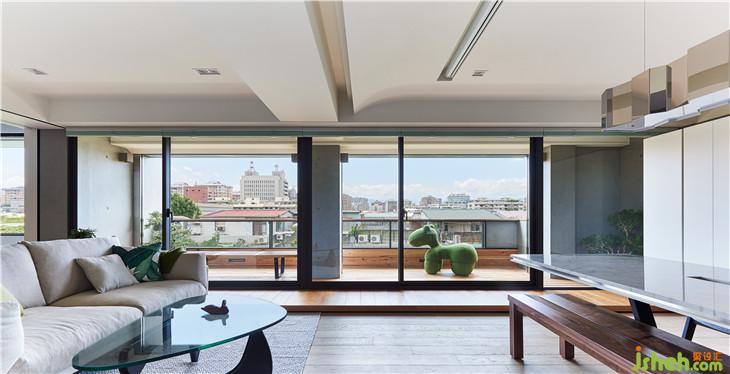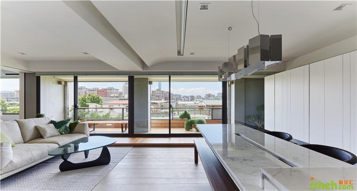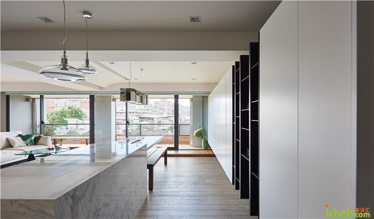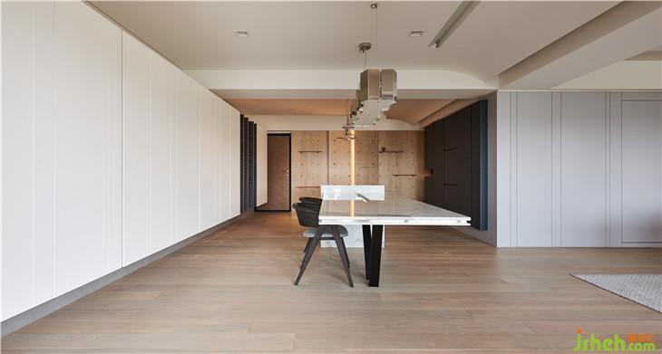 右側(cè)為主要收納空間,盡量將收納集中在同一邊,讓空間呈現(xiàn)最大開(kāi)放性