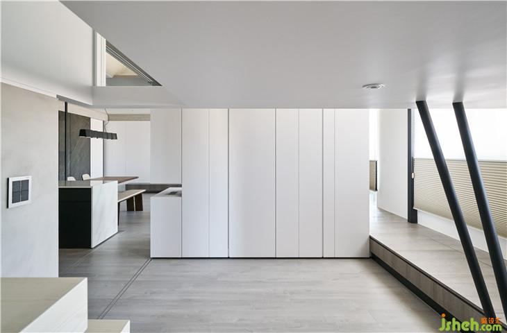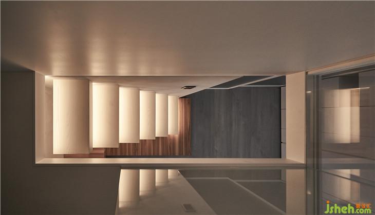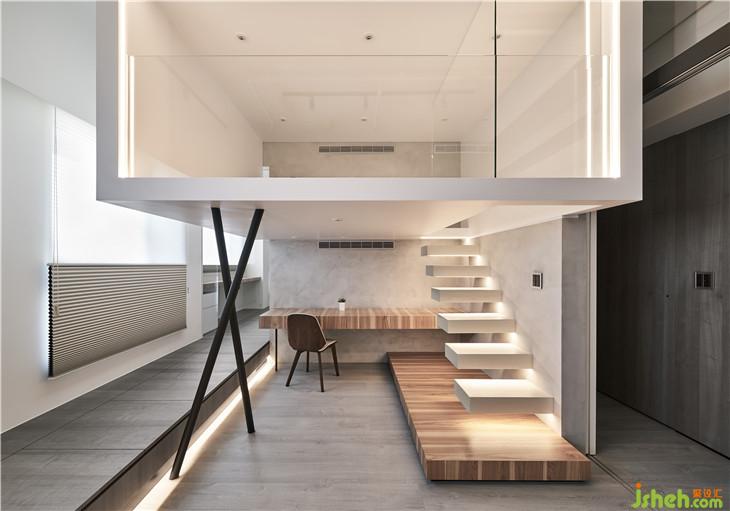 光盒下方為書房空間,我們讓階梯崁入墻內(nèi)下方內(nèi)崁LED燈,有一種輕巧感。