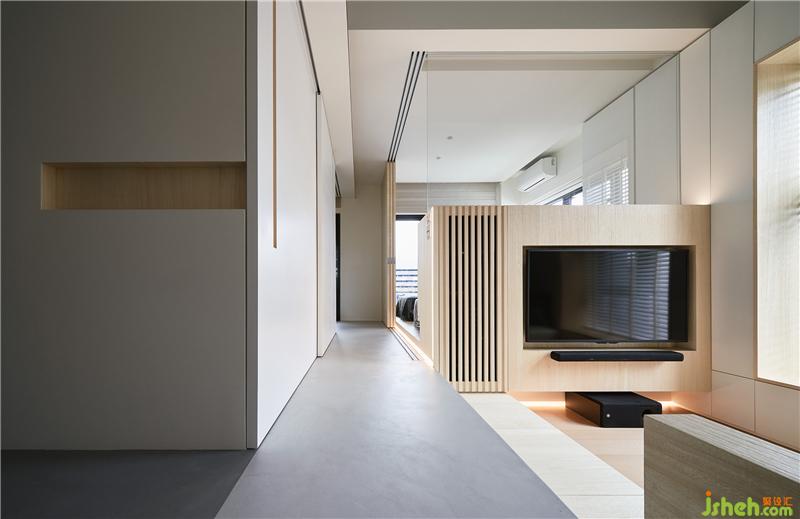 1. 在入口一側(cè)將衣柜的機(jī)能結(jié)合更衣室,也營造出玄關(guān)的界面